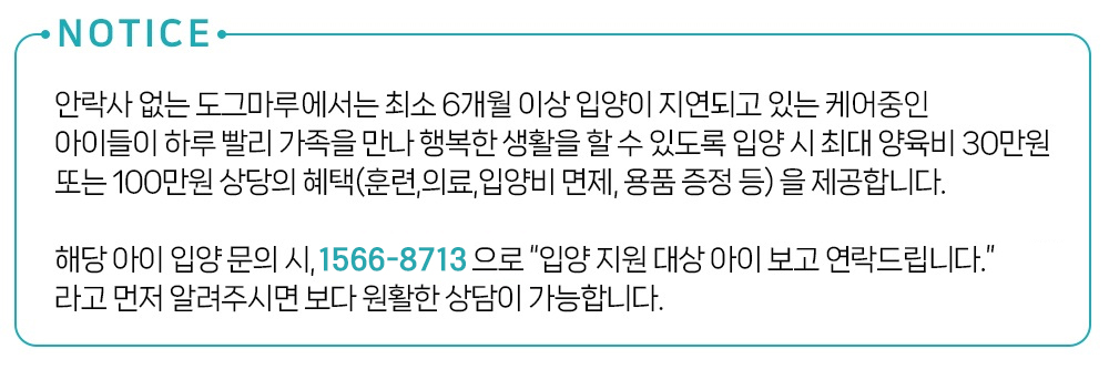 해당 아이 입양 문의 시, 1566-8713 으로