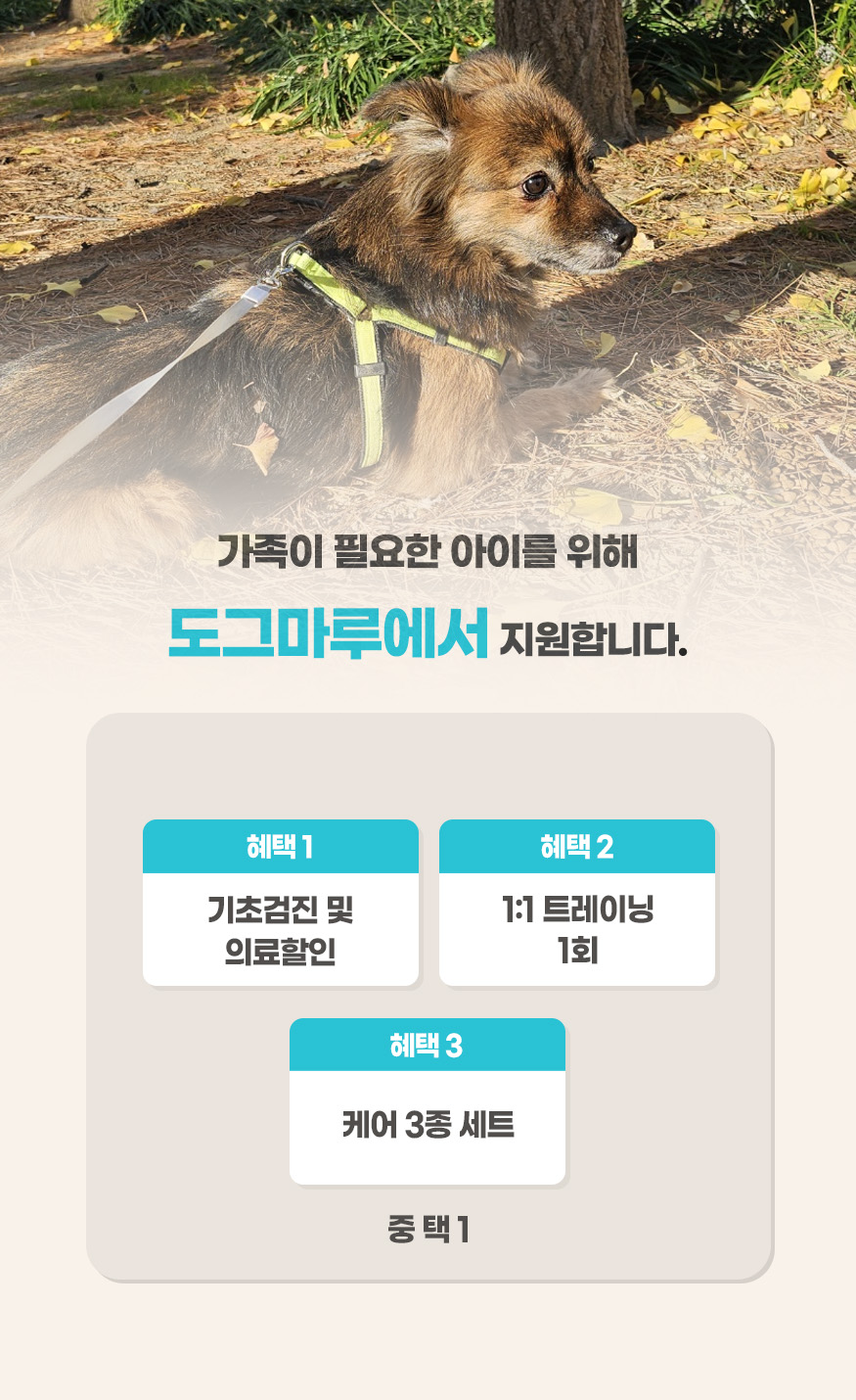 기초검진 및 의료할인 / 1:1 트레이닝 / 케어 3종세트