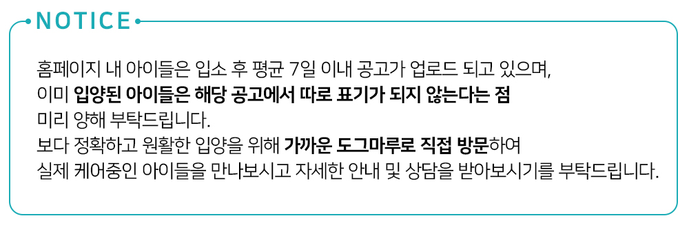 파양동물 입양 시 소정의 책임비가 발생되니 참고부탁드립니다.