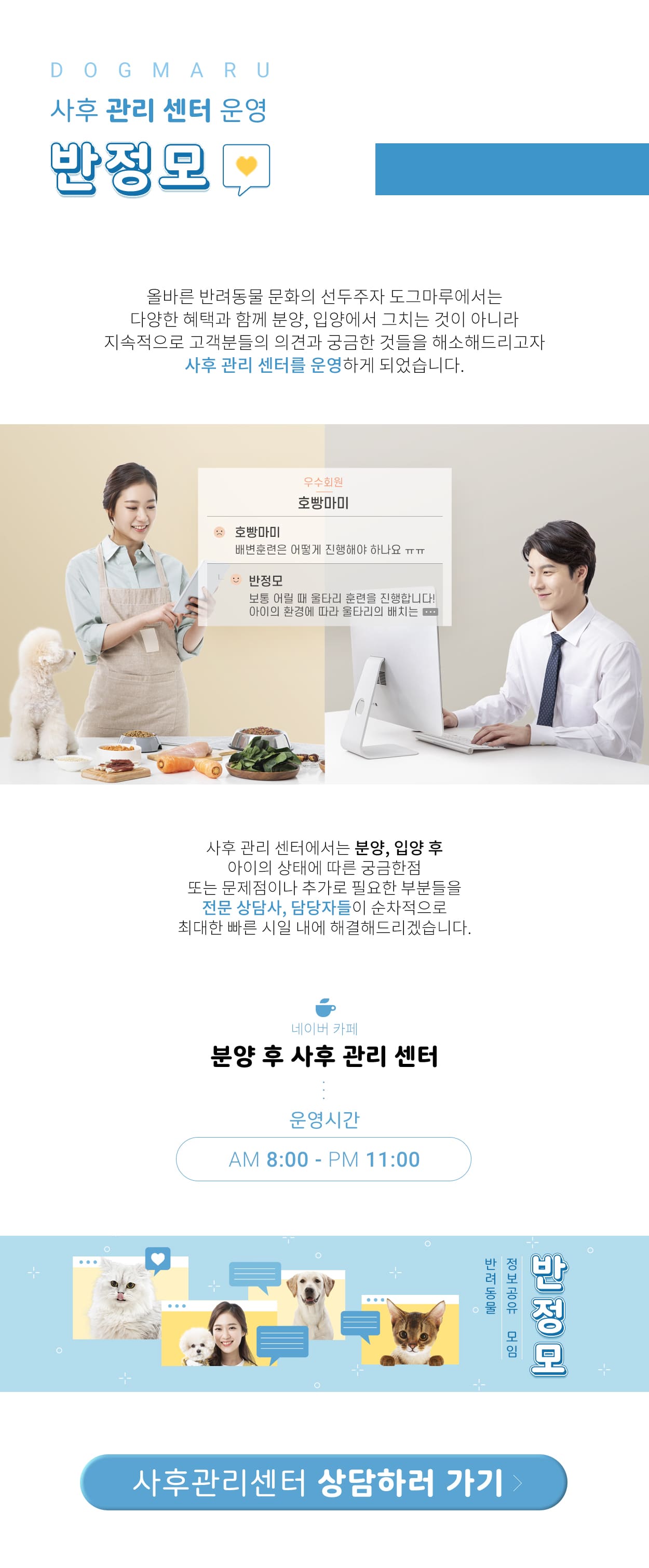 안녕하세요 도그마루에서 분양 후 사후 관리 센터를 운영하게 되었습니다 :)